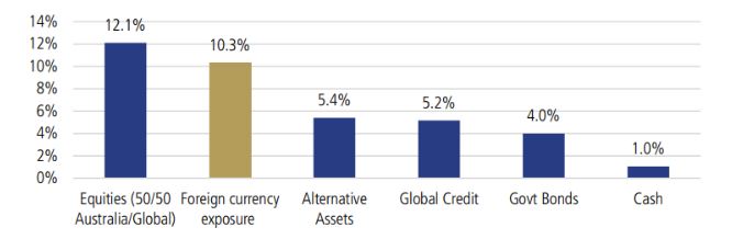 Generally, a more diversified FX exposure should lead to a more efficient total portfolio outcome. This would favour international equity, geographically diversified alternative assets, or multiple FX forwards (though these may be complex to implement) as the more efficient vehicles for obtaining FX exposure.