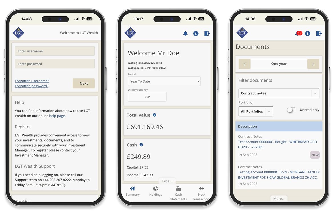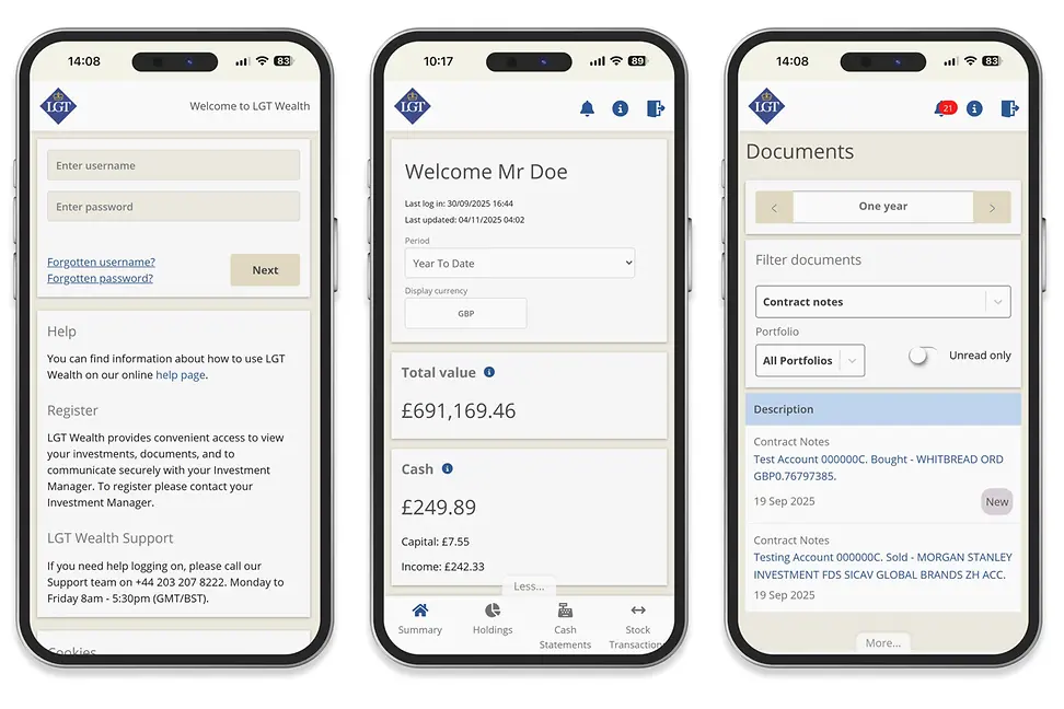 LGT Wealth is also available as an app that can be downloaded onto your smartphone or tablet.