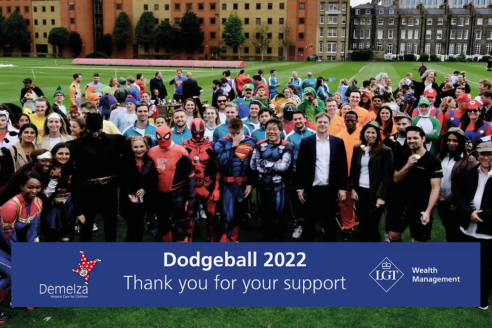 Our annual Charity Dodgeball tournament returned in May with 30 teams competing at London’s Honourable Artillery Company to raise funds for Demelza. Teams of six players competed in fancy dress throughout the afternoon, with the event raising £23,019, which has been matched by our Charity Committee. The total amount is enough to fund a specialist nurse and make a huge difference to the lives of seriously or terminally ill children.