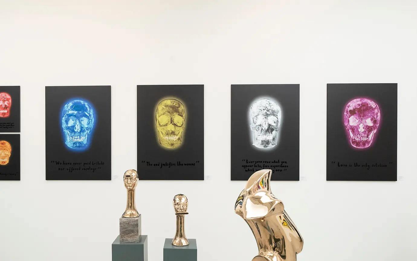 The Medici’s, a ruling Florence banking family and political dynasty that first gained prominence under Cosimo de' Medici during the first half of the 15th century, understood how to use art to create a story. In their case, this story was their own, as their commissioning and patronage of important artists of the day sought to thread together their own place and history and an immortalisation in the process. The Medici Family Skull Portraits (the artist’s fifth skulls portraits to date) is a new series of portraits of The Medici Family based on the photos of the skulls from the Medici Family tomb in Florence, taken by Professor Gena in 1947 when the Michelangelo tomb sculptures were removed for safekeeping during World War II. Subjects included the actual remains of Lorenzo the Magnificent, Cosimo the Elder, Cosimo I, Eleanor of Toledo and Giovanni di Bicci de Medici. The works, photographic prints on di-bond metal sheet each with painted quotes, provided one of the highlights of the exhibition.