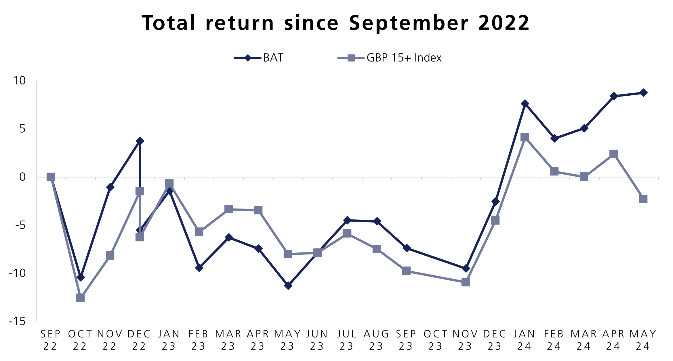 BAT has been reducing its debt through short-term tenders and is now targeting longer-dated bonds like the 2052 issue for quick and efficient debt reduction.
