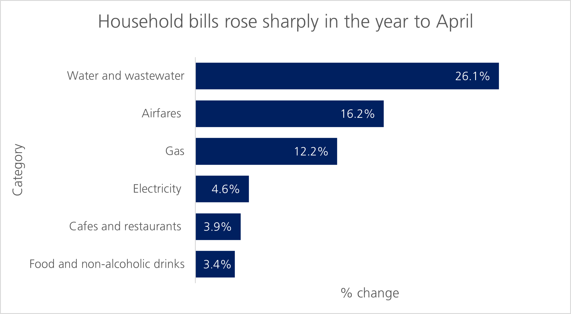 • April’s inflation figures came in higher than expected as water, gas and electricity bills rose in the UK