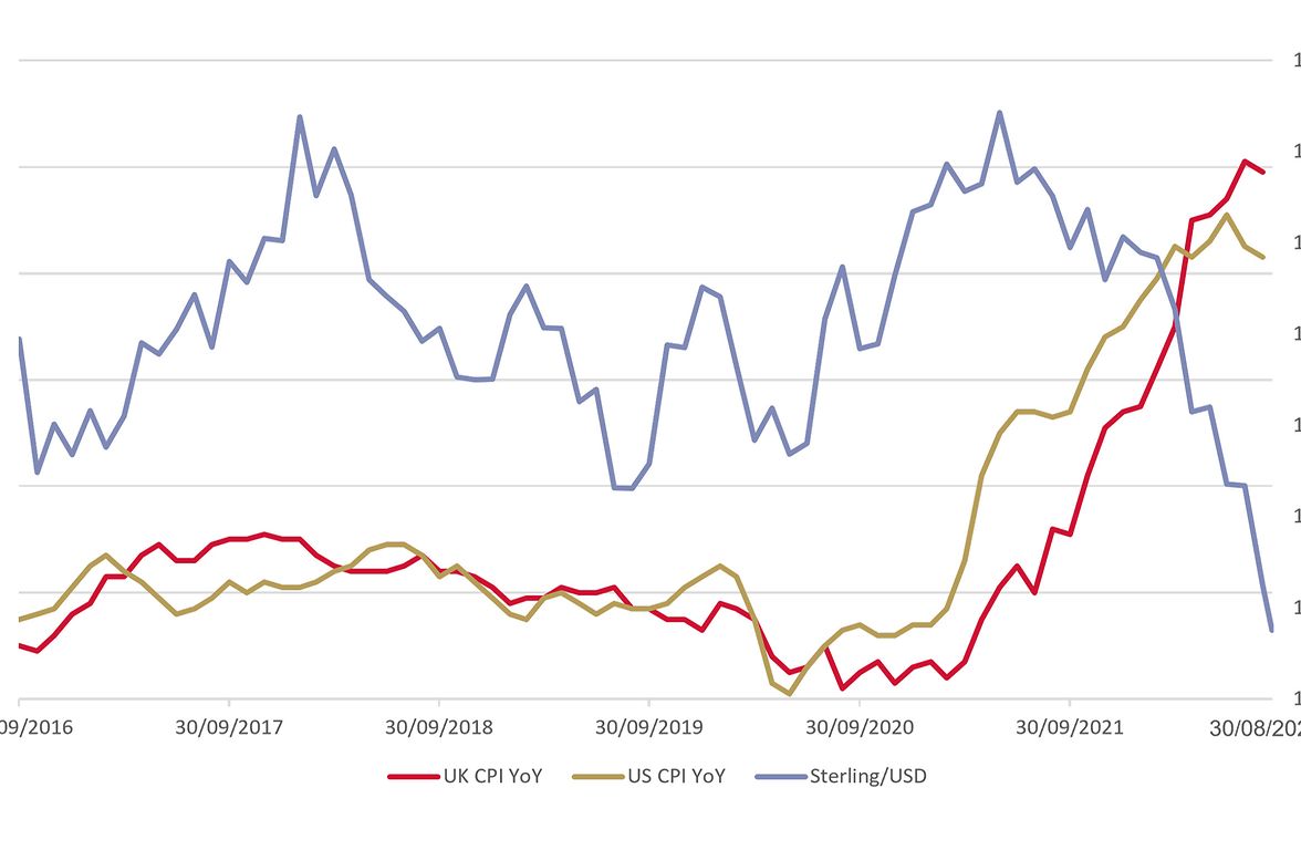 The dollar strength and/or sterling weakness we have seen this year will continue to be a material driver of the how inflation differs. When the dollar strengthens, the US economy exports some of its inflationary pressures, as it tends to push commodity prices down that tend to be priced in dollars and allows for cheaper imports where possible.