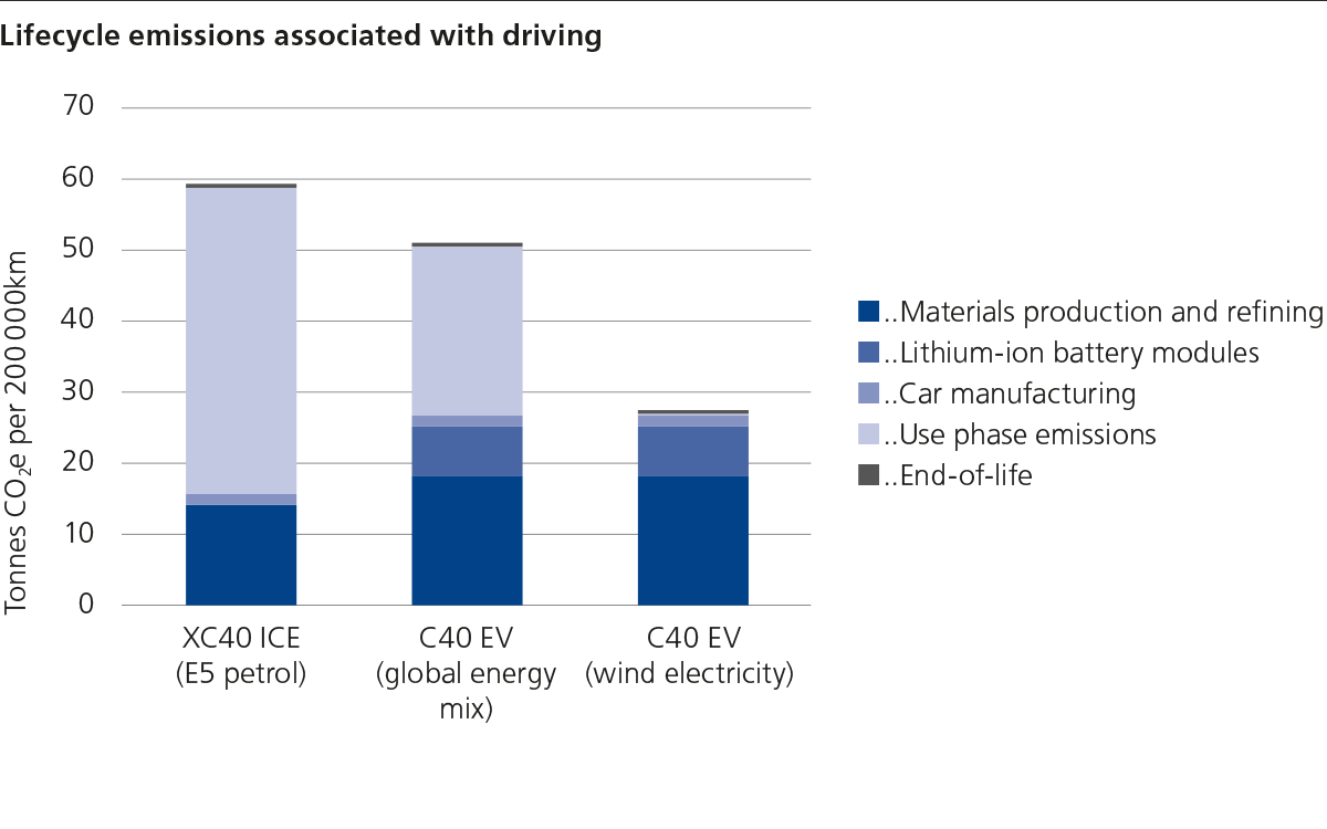 The diagram below highlights that a focus on the material inputs will be crucial in ensuring the sustainability and net-zero targets of heavy industry over the coming decades. This chart from Volvo highlights the high carbon intensity of current extractive processes. Even if you switch from a petrol to electric vehicle and source the electricity renewably, you are left with nearly half your emissions.