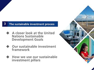 Learning objectives include: a closer look at the United Nations Sustainable Development Goals, our sustainable investment framework and how we use our sustainable investment pillars.